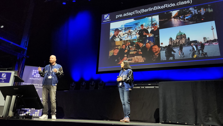 The first-annual adaptTo() pre-conference bike ride took place in Berlin the day before the first sessions, on 28 September 2025. Attendees toured the sights around Berlin, ending off at the Kulturbrauerei - venue for the adaptTo() Conference. In addition to the fresh autumn air and scenery, we got a chance to have some great conversations with attendees on what they were most looking forward to in the conference to come, including some words from the conference's master of ceremonies, Roman Müller!